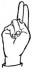 На ћирилици написано МИЛА ИГЊАТИЋ састоји се из 11 слова [?]. Исписано ћириличном једноручном азбуком за глувонеме: